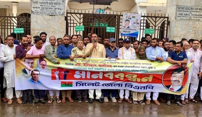 আজ বৃহস্পতিবার দুপুরে সিলেট নগরের কোর্ট পয়েন্টে জেলা বিএনপি আয়োজিত মানববন্ধনে বক্তৃতাকালে তিনি এই দাবি জানান।