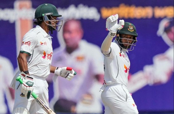 অধিনায়ক নাজমুল হাসান শান্ত তার টেস্ট ক্যারিয়ারের ষষ্ঠ শতক ঝুলিতে ভরেন। ১৪টি চার আর এক ছক্কায় তিনি অপরাজিত ১৩৬ রানে। আর পাঁচ বাউন্ডারিতে ১০৫ রানে অপরাজিত আছেন সাবেক অধিনায়ক মুশফিকুর রহিম। এই গল মাঠেই ক্যারিয়ারের প্রথম ডাবল সেঞ্চুরি করেছিলেন মুশফিক। আজ তুলে নিলেন ক্যারিয়ারের ১২তম শতক।