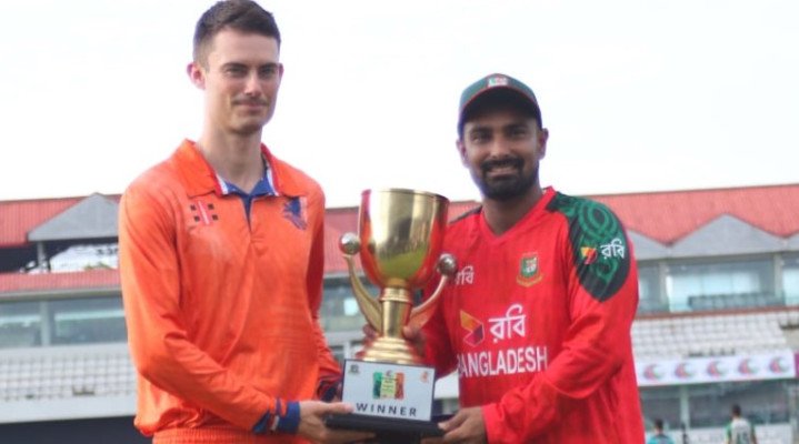 সিলেটে মুখোমুখি হতে যাচ্ছে বাংলাদেশ ও নেদারল্যান্ডস। আজ থেকে সিলেট আন্তর্জাতিক ক্রিকেট স্টেডিয়ামে শুরু হবে তিন ম্যাচের টি-টোয়েন্টি সিরিজ। এই লড়াইয়ের আগে গতকাল মাঠেই উন্মোচন করা হলো সিরিজের ট্রফি।