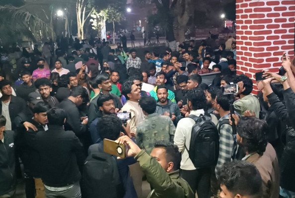 তখন বিভিন্ন প্যানেলের সমর্থক শিক্ষার্থীরা সেখানে শাকসু নির্বাচন নিয়ে হাই কোর্টের আদেশ স্থগিত ও মঙ্গলবার ভোটের দাবিতে বিক্ষোভ করছিলেন।