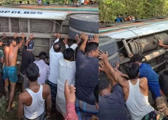 স্থানীয় সূত্রে জানা যায়, নীলফামারীর ডোমার থেকে দিনাজপুরগামী গেটলক ‘শাহী পরিবহন’এর একটি বাস হঠাৎ নিয়ন্ত্রণ হারিয়ে সড়কের পাশের একটি গাছের সঙ্গে ধাক্কা খেয়ে উল্টে পড়ে। দুর্ঘটনার সময় বাসটিতে আনুমানিক ৪০ জন যাত্রী ছিল বলে ধারণা করা হচ্ছে।
